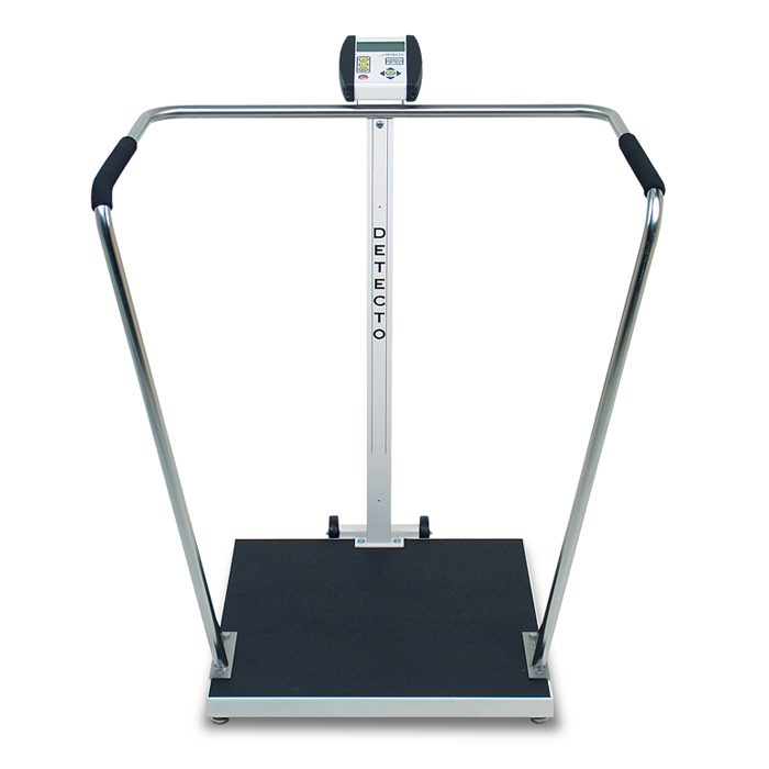 Detecto’s 6857DHR American-made digital bariatric scale is designed for ideal weighing performance and comes with a versatile design that uses the company’s exclusive 1LOOK display showing weight, height and BMI onscreen simultaneously by elevating the digital height rod while a patient is being weighed. There are neither keys to push nor operational sequences to memorize; it’s completely automatic. All information can be output to a PC or printer for EMR/EHR via the serial of scale, USB or optional wired or Wi-Fi Ethernet ports. The capacious, robust steel platform measures 24 inch (61 cm) square. Integral battery power and wheels allow easy transport to several locations. OIML EC Class III model available. Key Features BMI Calculation 1000 lb/450 kg Capacity Digital Height Rod 6 C Batteries (Not Included) Integral Wheels Ease Transport OIML EC Class III Model Available Spacious Platform Made in USA Quality EMR/EHR Ready Wi-Fi and Ethernet Optional